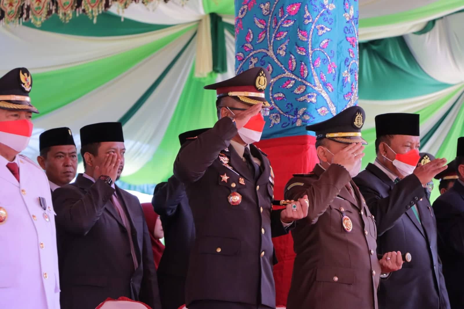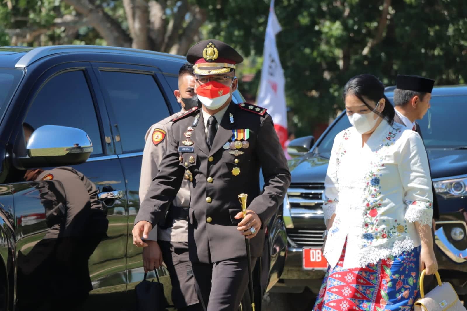 POJOKberita.id, BOLMUT_Kapolres AKBP Areis Aminnulla S.I.K, di dampingi Ketua Bhayangkari hadiri Upacara Peringatan HUT RI ke-77 Bersama Pemerintah Daerah Kabupaten Bolaang Mongondow Utara (Bolmut) , Rabu (17/08/2022) Pagi, di Lapangan Kembar Boroko.