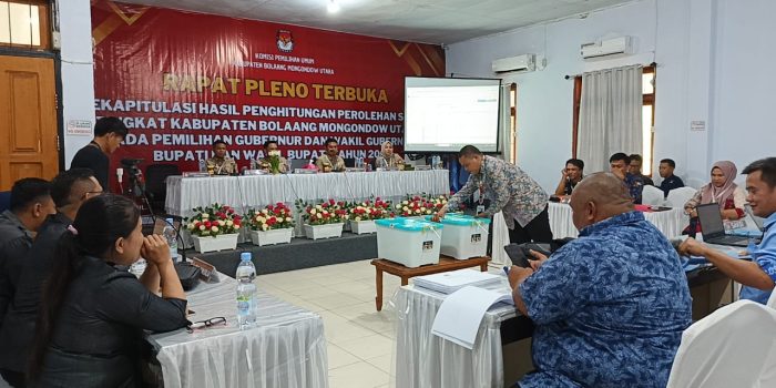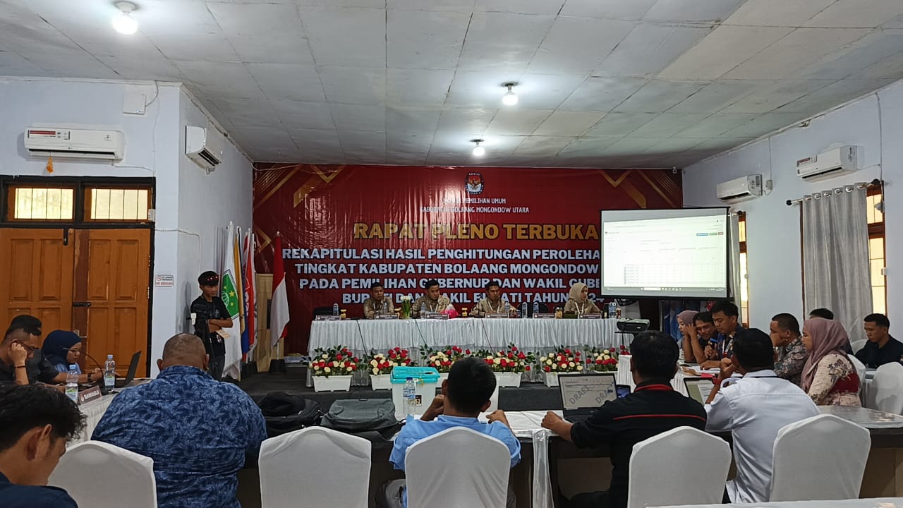 Selama proses pleno, hasil penghitungan suara dari seluruh kecamatan di Bolmut, yakni Kaidipang, Bolangitang Barat, dan Sangkub, Bolangitang Timur, Pinogaluman dan Bintauna, Data ditampilkan secara rinci mencakup hasil pemilihan untuk tingkat gubernur dan wakil gubernur, serta bupati dan wakil bupati.