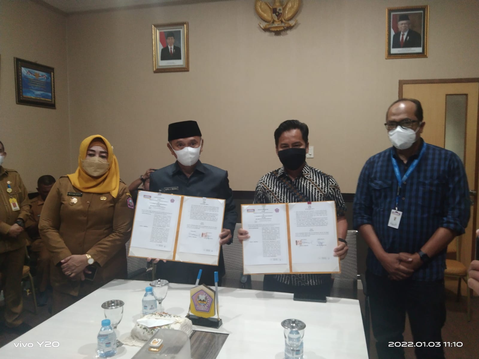 POJOKberita.id, POHUWATO _ Kontrak kerja penandatanganan yang di lakukan oleh Pemerintah Daerah dan PT.Indomarco Prismatama di gelar di ruangan pola kantor Bupati.