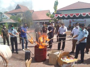 ” Semoga dengan hadirnya semua pihak terkait yang berurusan dengan pemusnahan barang bukti merupakan suatu pembuktian dari apa yang menjadi ketentuan dalam mekanisme pemusnahan bukti tetap dan biasanya kegiatan tersebut kami lakukan dalam setiap 1x dalam setahun sesuai dengan banyaknya dan ketentuan yang di tetapkan,” tutup mas’ud.