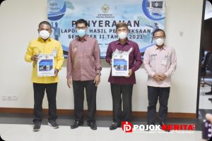 POJOKberita.id,POHUWATO _ Kegiatan penyerahan laporan Hasil pemeriksaan (LHP) yang digelar oleh badan Pemeriksa Keuangan (BPK) RI Perwakilan Provinsi Gorontalo yang diserahkan oleh Kepala Sub Auditorat, Joni Indra Putra kepada Bupati Pohuwato, Saipul A. Mbuinga bersama Ketua DPRD Pohuwato Nasir Giasi atas belanja modal infrastruktur anggaran awal Januari s.d 30 November 2021,Kamis,20/1/2022