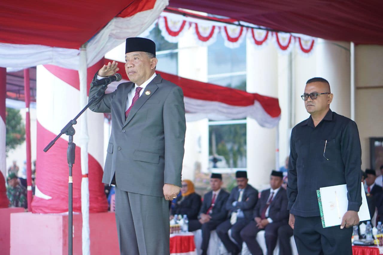 POJOKberita.id,BOLMUT__Bupati Bolaang Mongondow Utara Drs. Hi. Depri Pontoh Menjadi Inspektur Upacara pada Peringatan Hari Lahir Pancasila Tingkat Kabupaten Bolaang Mongondow Utara Tahun 2023 yang bertempat di Halaman Kantor Bupati, Kamis (01/06/2023).