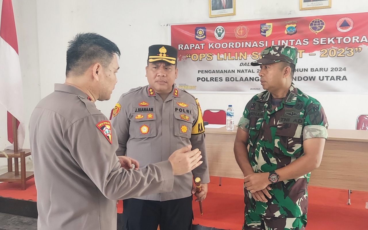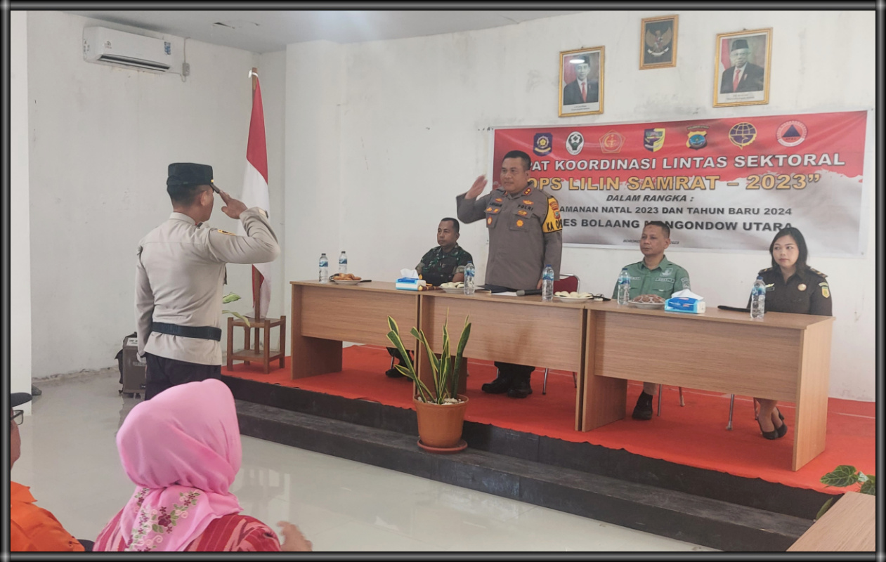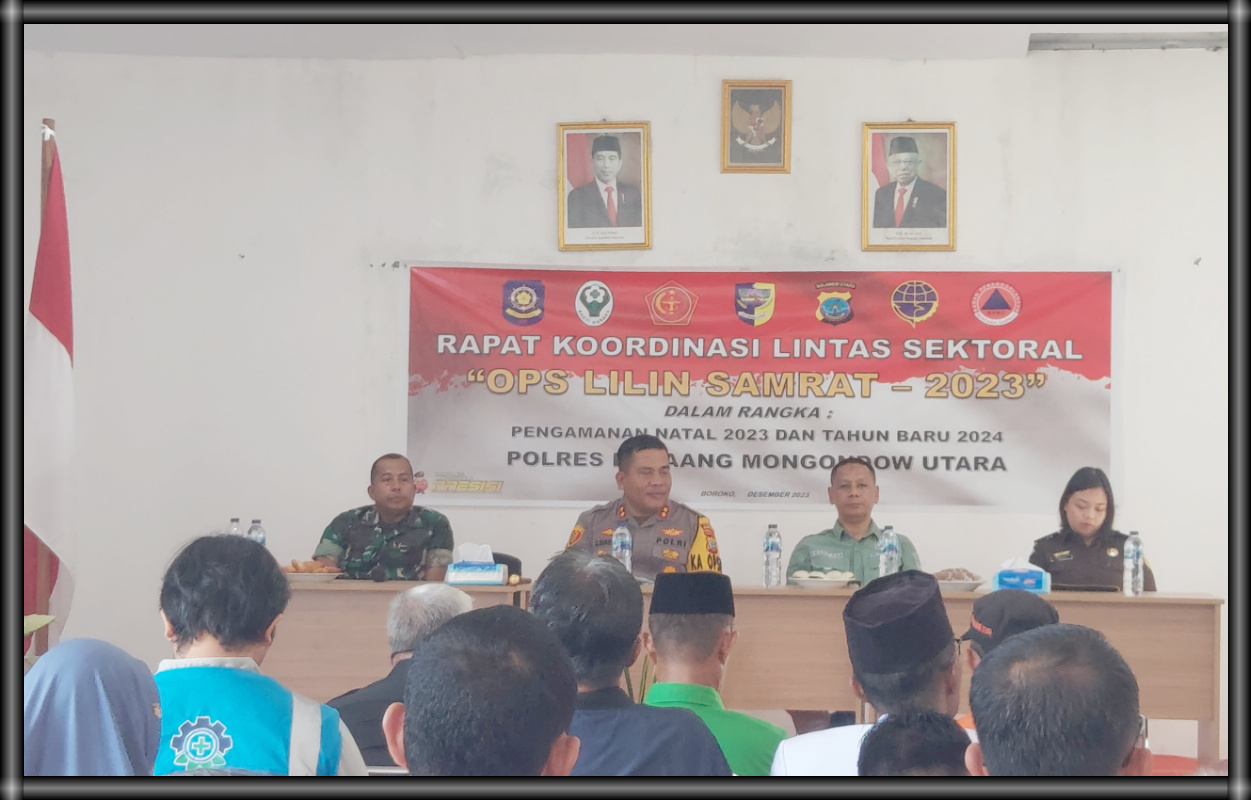 POJOKberita.ID, BOLMUT__ Dalam rangka memastikan kesiapan dan kelancaran pengamanan menyambut Natal 2023 dan Tahun Baru 2024, Polres Bolaang Mongondow Utara (Bolmut) menggelar Rapat Koordinasi Lintas Sektoral Ops Lilin Samrat-2023