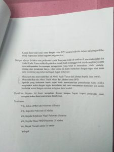 Alfred Anwar Sekretaris PMD juga menyampaikan akan selalu siap menindak lanjuti persoalan ini dengan menunggu hasil audit dari Inspektorat dan apabila kedapatan maka kami akan melakukan pemecatan sesuai peraturan dan perundang-undangan yang berlaku. untuk itu masyarakat perlu bersabar dlu dan memberikan kepercayaan kepada kami sehingga bisa mempermudah audit yang telah di percayakan kepada Inspektorat.tutupnya Alfred.