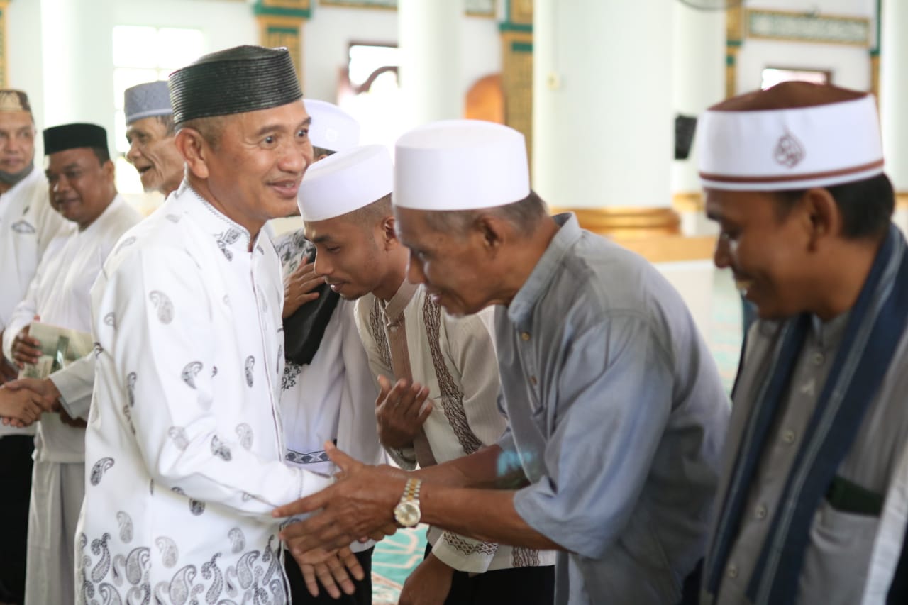 “Kita ketahui bersama bahwa mimpi kita besar kedepan adalah bagaimana mewujudkan bahwa masjid agung ini menjadi masjid yang kita rencanakan untuk kita desain menjadi islamic center, inysa allah ini terwujud”,jelas bupati.