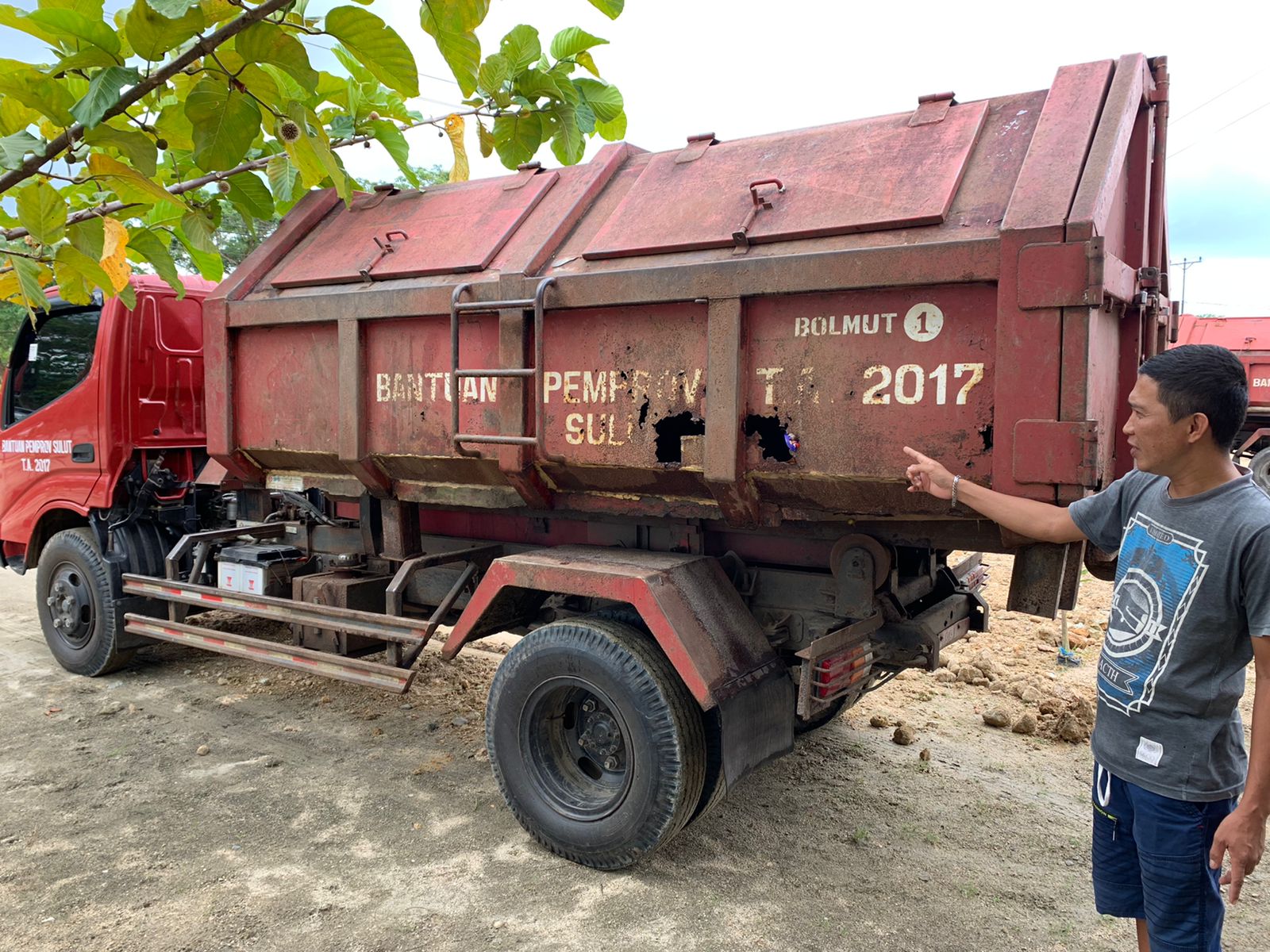 Tak tanggung-tanggung Ketua Fraksi PDI Perjuangan DPRD Bolmut tersebut Mengeluarkan uang Pribadinya puluhan Juta Untuk Perbaikan Mobil Sampah.